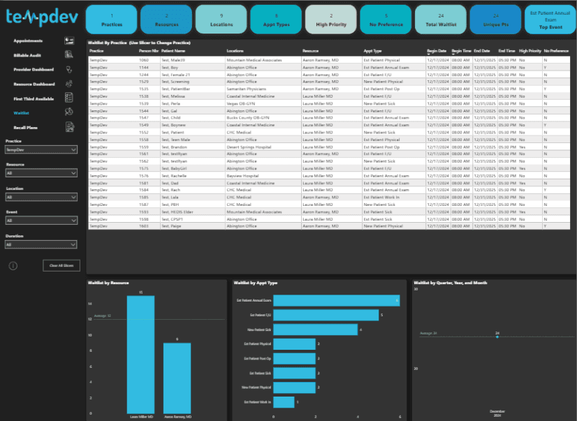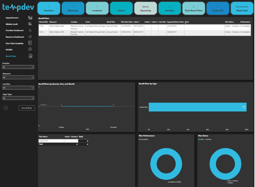 Comprehensive Coverage: Dive into billable audits, provider dashboards, recall plans, waitlist tracking, and more.